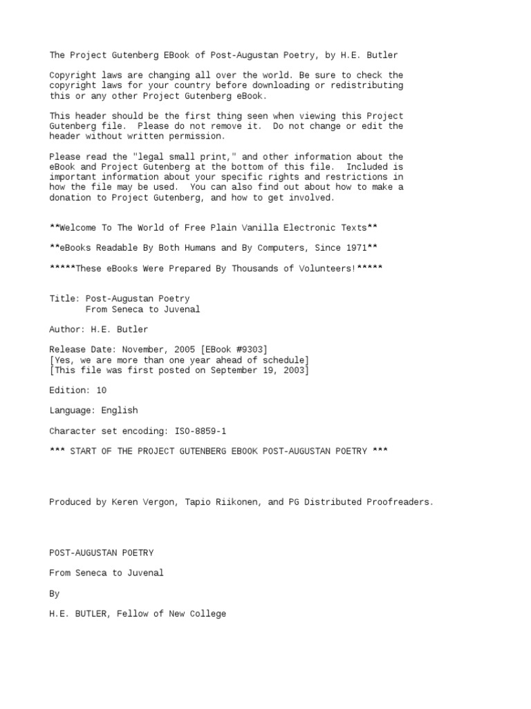 Post Augustan Poetry From Seneca To Juvenal By Butler H E 1878 1951 Pdf Project Gutenberg Satire